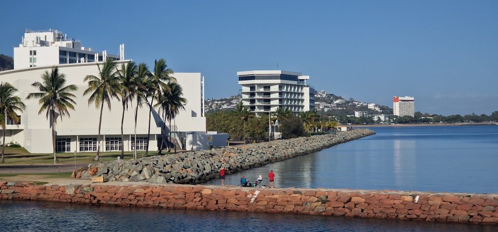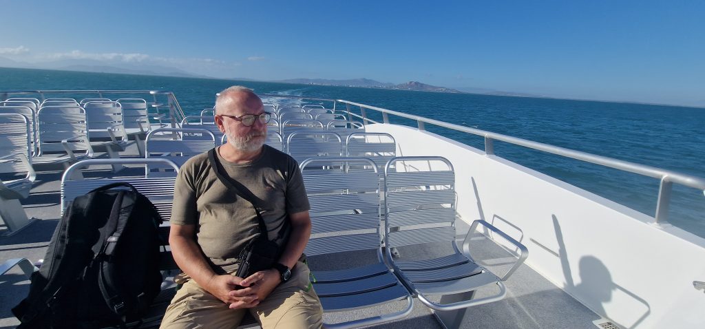 Ein früher, schöner Morgen am Meer. Beizeiten verließen wir das Hotel. Parken am Hafen. Wo wir uns digital am Parkautomaten einchecken, perfekt durchdacht, papierlos, keine Parkscheine müssen hinter die Scheibe gelegt werden. Männer warfen ihre Angeln schon aus und zwei Frau legen die Leinen los. Die Fähre bringt uns zur gegenüberliegenden Insel Magnetic Island und die Spannung steigt.