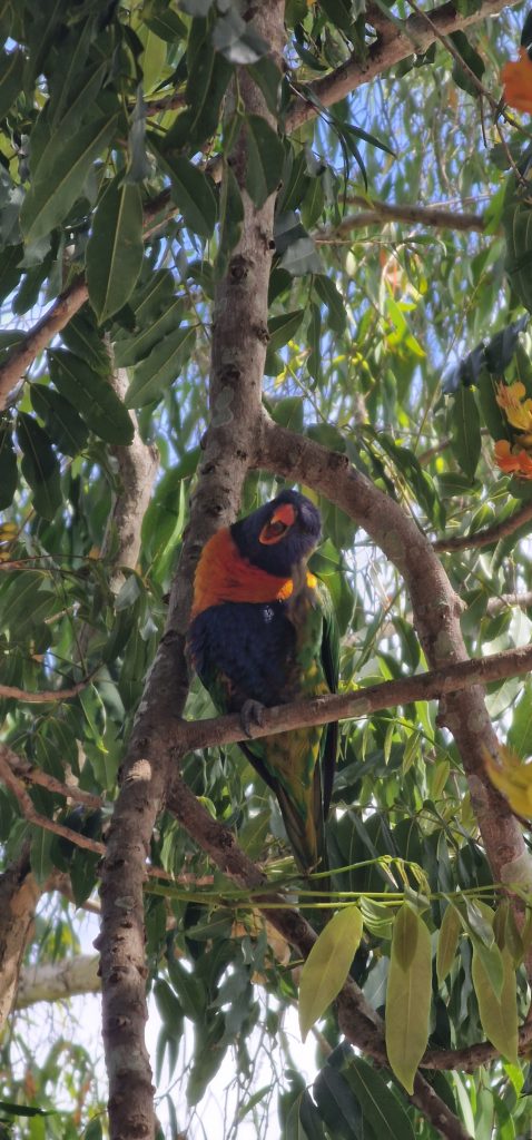 Die Papageien berauschen sich am Nektat der Chestnutblüten