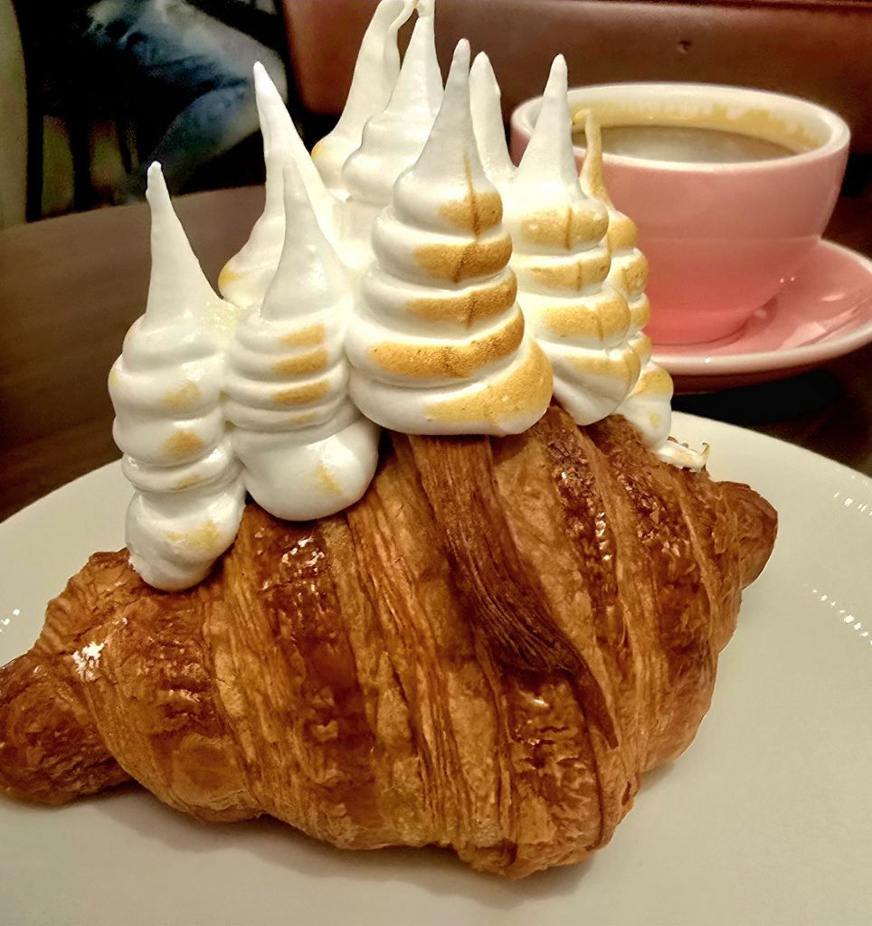 Lange saßen wir beim Teetrinken und auf Bänken in kleinen Parks (siehe Titelfoto. Eigentlich gehen alle Tiere zu Reiner.Was die Katze nun an mir fand?) und schöpften nach erneutem Apothekenbesuch Hoffnung, dass es mit Reiner aufwärts geht. Ich lief allein zu einem netten Café: Croissant mit Orangen- Baiser, man gönnt sich sonst auch alles: