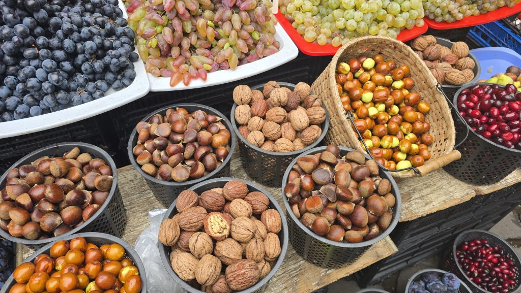 Ohne Probleme fanden wir zum Freund Duster zurück, nur war er zugeparkt. An dem Auto vor uns gab es eine Telefonnummer und zwei nette Männer halfen uns, den Autofahrer telefonisch zu erreichen und siehe da, es dauerte nur eine Minute und er parkte seinen Mercedes um. Wir verließen gern die quirlige Stadt und fahren nun wieder in die Berge. Am unterwegs schnell gebuchten Hotel am Straßenrand brannte kein Licht, also Mail schreiben, Nummer in Deutschland anrufen, komisch. Da stimmt was nicht. Aber siehe da, zwei Frauen im Autochen, beide in unserem Alter, eine mit dem typisch hinten zusammen gebundenen Kopftuch, fahren vor und wir kriegen das Zimmer und Tee zur Begrüßung. Da hilft nur russisch sprechen, dank Google kriegen wir das wieder hin, bis eine deutschsprechende junge Frau telefonisch hinzugeschaltet wird. Ja, die Tochter lebt in Deutschland… Die Welt ist ein Dorf. Während der Herr aus Amerika, der in Italien lebt, bei meiner Frage, was die Amerikaner zum Ukrainekrieg denken, kategorisch ablehnte, eine Position zu beziehen, kommen die Frauen von allein drauf zu sprechen und wir sind uns nahe. Im Zimmer gibt’s auch ‚ richtig mit Bettwäsche bezogene‘ Zudecken, so dass ich meinen Schlafsack mal in seiner Hülle stecken lasse.Gute Nacht!