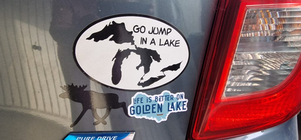 Mein Auto und ich denken daran: das Leben ist besser nicht nur in Flipsflops (in Australien), sondern auch besser am Golden Lake „mitten“ in Kanada, einer der 2 Millionen Seen…