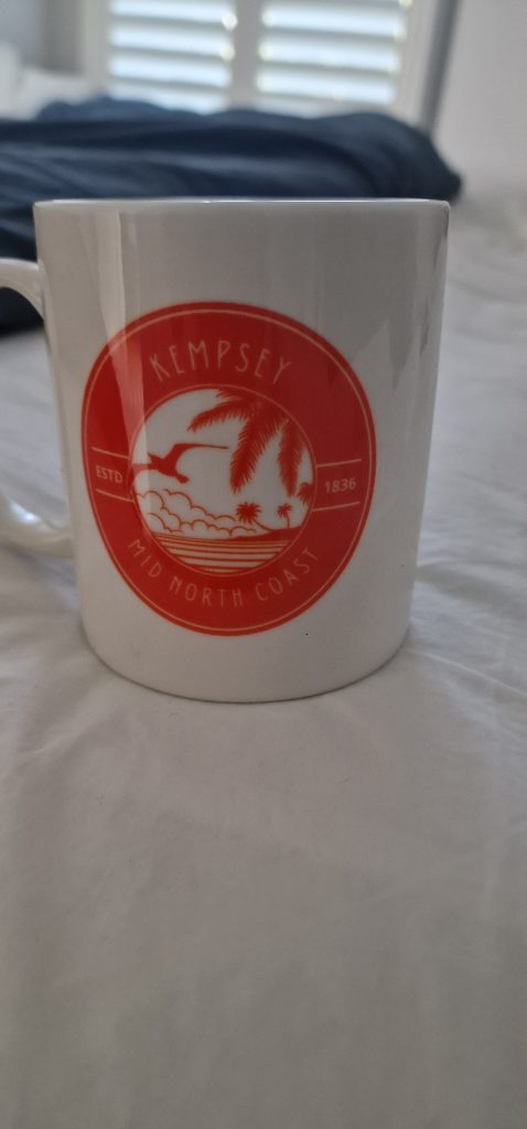 Aufgrund unserer Bitte hat der Club von Kemsey es ermöglicht, eine Werkstatt für behinderte Menschen zu besuchen. Mehrere vom Personal (in blauen Shirts) begleiten uns auf der Führung durch die sehr großen Blechhallen auf einem großen Gelände. Menschen mit Behinderung (in orangen Shirts) sehen wir wenige. Es arbeiten ca. 200 hier bzw. werden betreut. Fotografieren dürfen wir nicht. Durch meine Kenntnis der in Deutschland scheinbar extrem strengen Arbeitsschutzgesetze, die z.B. auch Fenster bzw. mindestens Oberlichter vorschreiben, staune ich nicht schlecht, wo und wie hier gearbeitet werden darf. Aber das ist nur untergründig. Vordergründig bin ich hoch erfreut, dass Australien scheinbar das gleiche System hat. Es wird für den Klienten bezahlt und mit dieser Sunme wird er 1:1 bis 1:5 (nicht mehr) betreut und gefördert und wenn möglich, in das (nicht inklusive) Arbeitsleben der Werkstatt eingegliedert. Es gibt aber auch Arbeitsmarkttest und Vermittlungen und auch eine Art Berufliche Bildung mit einem Computerkabinett und einem Chillraum mit großem Fernseher. Es gibt eine Kraftraum und eine Trainingsküche. Die Arbeitsbereiche sind die „Woodies“, de vornehmlich Produkte aus gespendeten Holz herstellen, die „Mowhawks“, die Rasen mähen, verticulieren, mulchen, eine Nähgruppe „Threads“, die personalisierte Beutel aus Naturmaterialien näht und Geschenke wie Tassen bedruckt, einen Second Hand Laden und ein Cafe Macleay, bestehend aus einem Imbisswagen. Die Nähgruppe stellt zur Abwechslung auch Kerzen und Seifen her. Eine Baugruppe baut Hilfsvorrichtungen für alte und behinderte Menschen. So weit ich das verstand, muss auch das Entgelt für die Menschen mit Beeinträchtigungen erarbeitet werden. Ich hatte den Eindruck, dass das nicht so vordergründig wichtig ist wie bei uns, wo ein Mindestentgelt bezahlt und von daher auch erwirtschaftet werden muss. Grade baut die gemeinnützige Organisation ein Verwaltungsgebäude mit allen ökologischen Raffinessen und auch paar Elektroautos und natürlich Solardächer gibts schon. Ich bin sehr dankbar, dass ich das Unternehmen kennenlernen durfte. Wir kaufen fleißig in ihre Shop ein. Ich weiß ja, wie wichtig das ist. Unten zwei der Produkte, das rechts ist eine Kerze in der Dose, ganz schön schwer für das Gepäck.