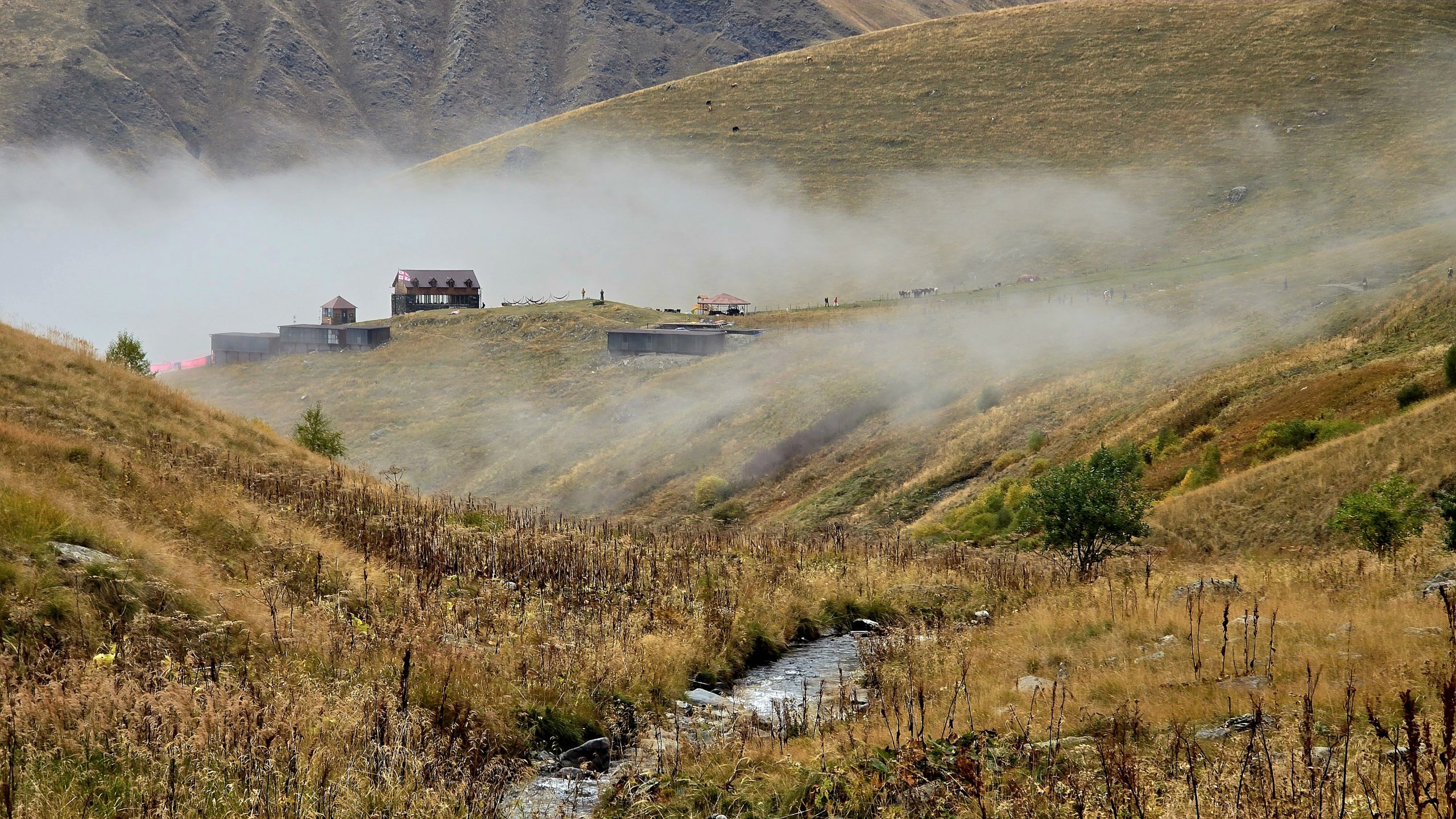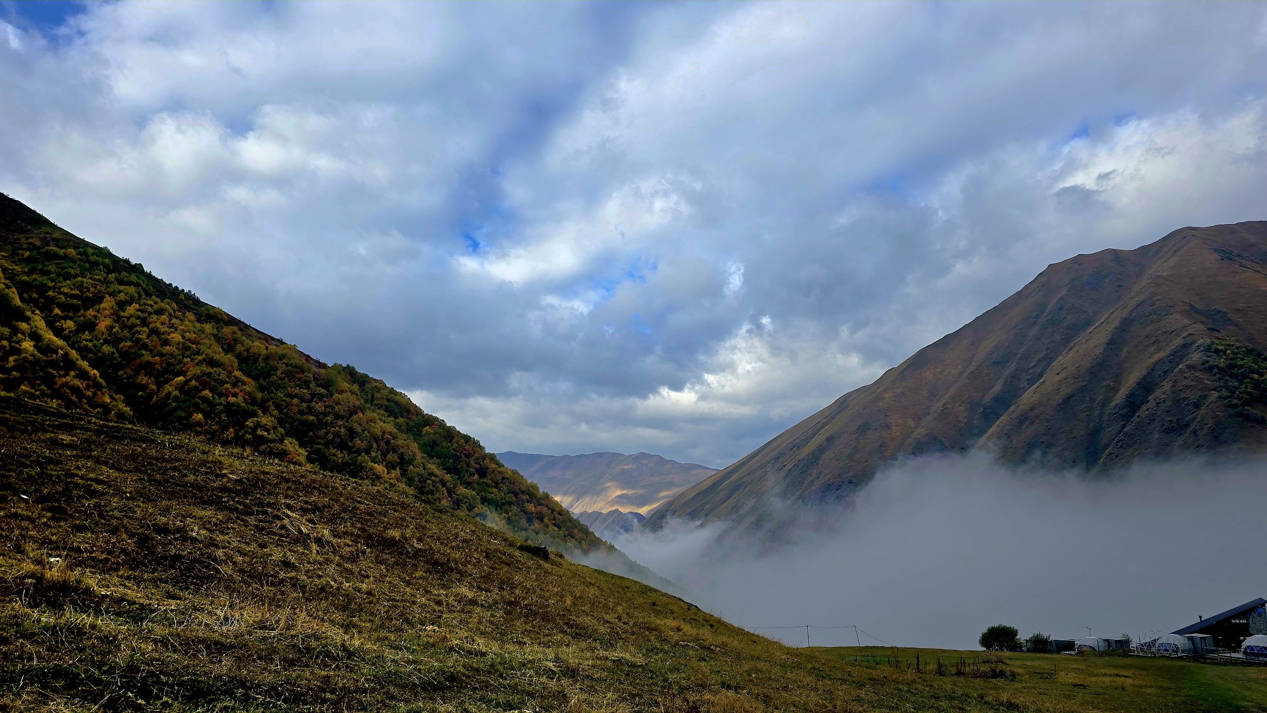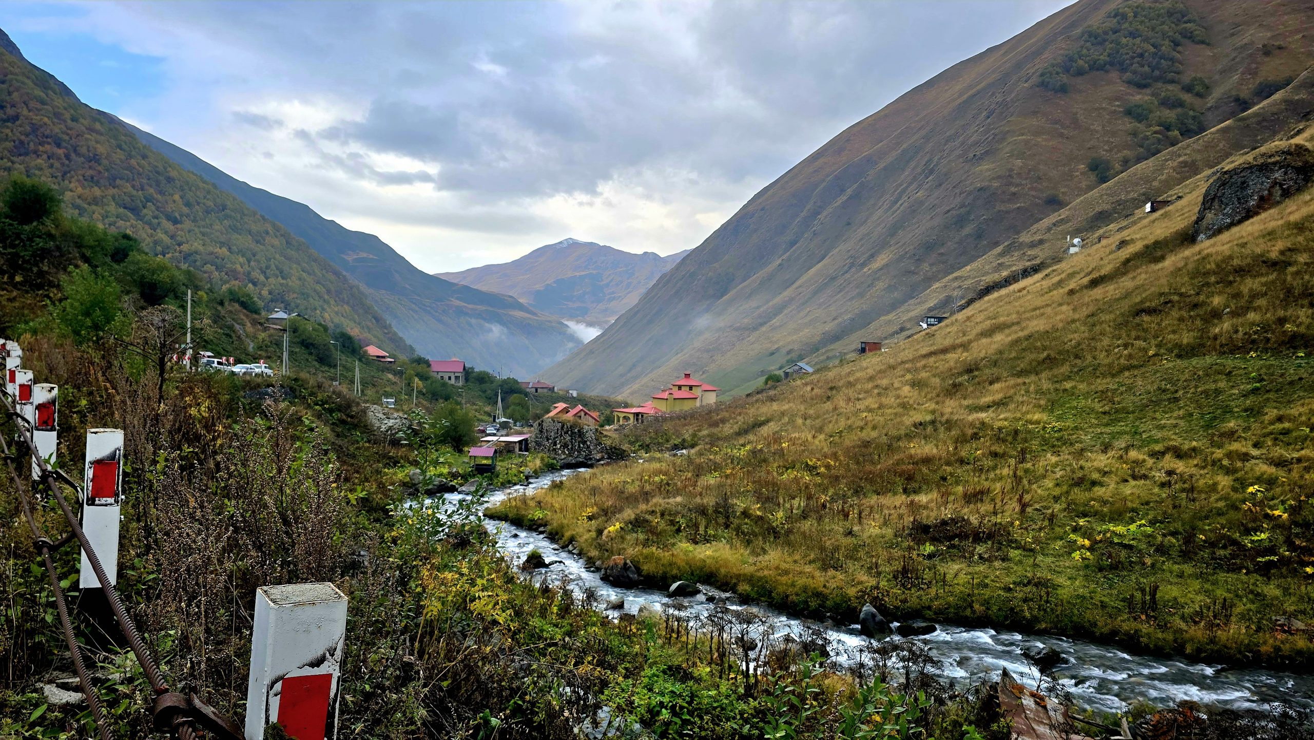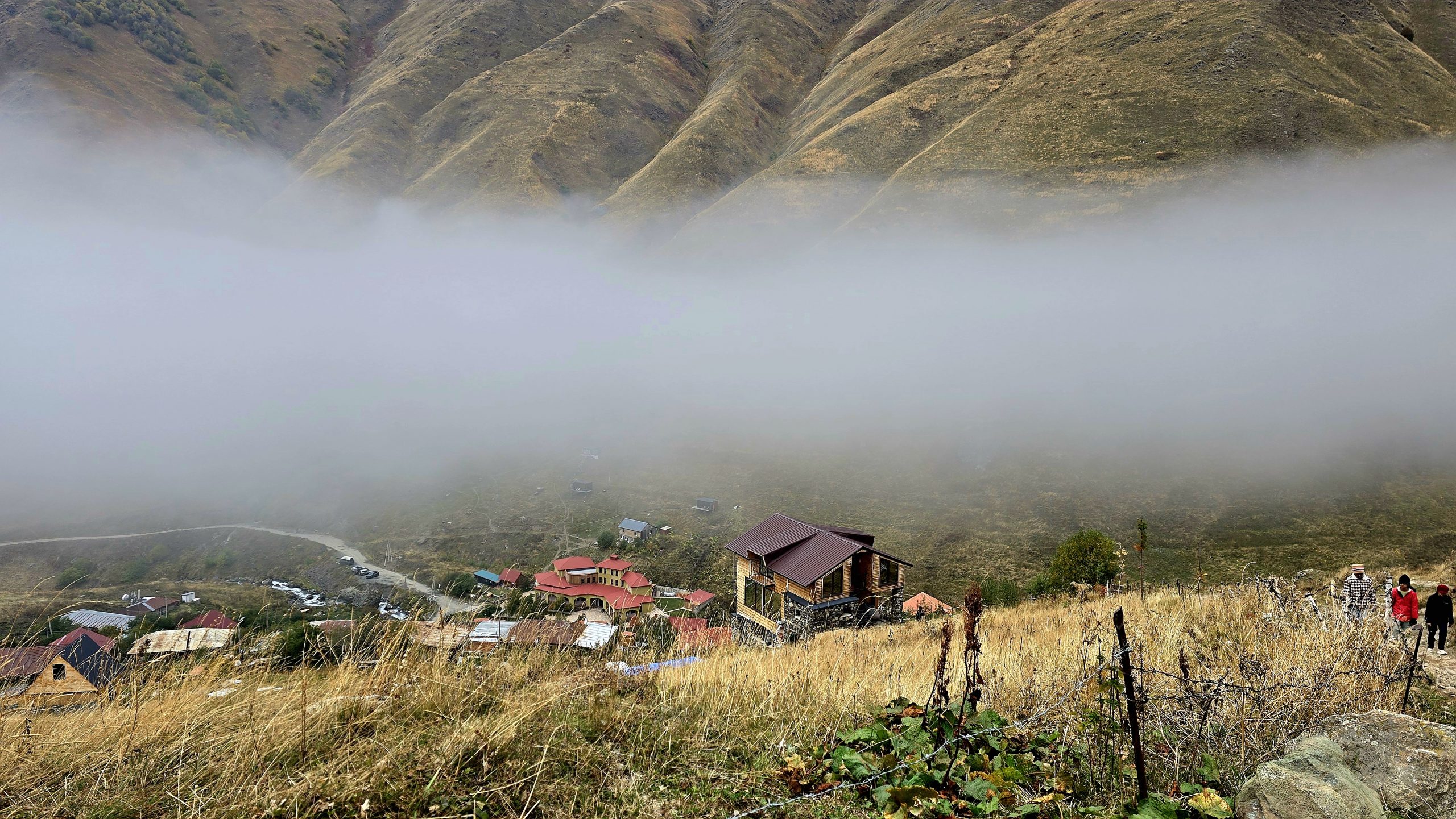 An der Gaststätte angekommen, sitzen wir zuerst am Tisch mit Georgiern, die ein Hotel betreiben und es uns empfehlen, aber es ist nicht unsere Preisklasse und liegt nicht auf unserem Weg. Dann gehen die Georgier und eine junge Chinesin mit ihrer Mutter gesellt sich zu uns. Die Mutter nimmt heißes Wasser für ihre Instantnudeln aus China. Die junge Chinesin bestellt sich was und wir führen wieder ein sehr nettes Gespräch über China, Deutschland und Georgien. Jetzt wissen wir, warum wir so viele chinesische Wandergruppen treffen. China hat 8 Tage Ferien, wenn wir es richtig verstanden. Als wir so fröhlich und entspannt aus der Gaststätte rauskommen, hat der Regen eingesetzt. Er endet bis abends nicht. Wir müssen im Regen die 1000 Steps runter, zum parkenden Auto wieder hoch und die Schotterpiste abwärts und atmen auf, als wir den Teil der Piste, die abgebrochen und von daher eingesunken ist, geschafft haben. Viele Tages- Wanderer parken ihr Auto vor dieser Stelle und nehmen die lange Wanderung nach Juta in Kauf. Wieder auf der Hauptstraße beschließen wir, den morgigen Tag noch ein Reiseziel anzusteuern. Nämlich die Höhlenstadt in Vardzia. Ich buche auch gleich in der Nähe eine Unterkunft. Dann wundere ich mich. Einmal zeigt das Navi an, es wäre 175 km entfernt, dann sind es plötzlich 370 km und 5,5 h Fahrzeit, dann wieder 175 km und 20 Uhr Ankunftszeit. Dann bin ich mit meinem Phone abgelenkt, was nicht mehr aufladen und zunehmend den Geist aufgeben will. In Vardzia sagt das Navi auf einer kleinen Brücke im Stockdunkeln, dass wir angekommen sind! Nee, da ist was verkehrt. Wir studieren die Landkarten bei Google und na toll, da gibt es eben (wie auch in Deutschland) zwei Vardzia und wir sind halt im falschen. Dumm gelaufen. Das Hotel im „richtigen“ Vardzia ist nicht kostenfrei stornierbar, noch dümmer gelaufen. Wir bitten um Verständnis. Mal sehen, was rauskommt. Und müssen natürlich was neues buchen, denn es regnet und eine Dusche nach dem Wandern im Regen wäre cool.