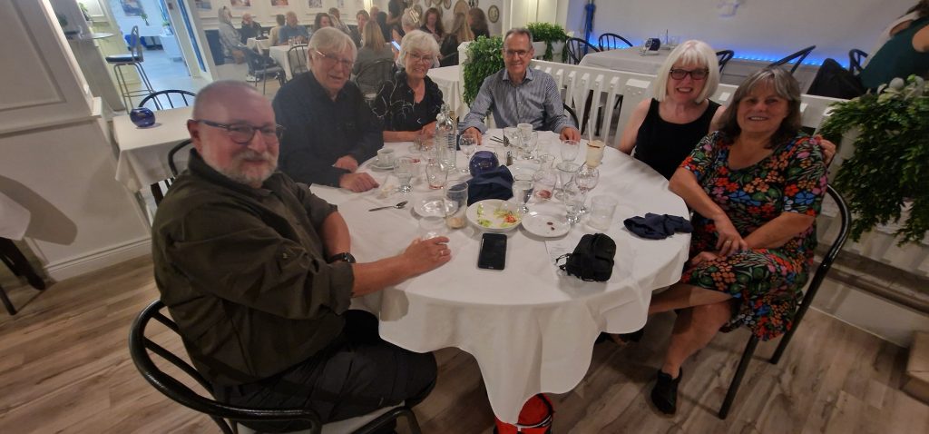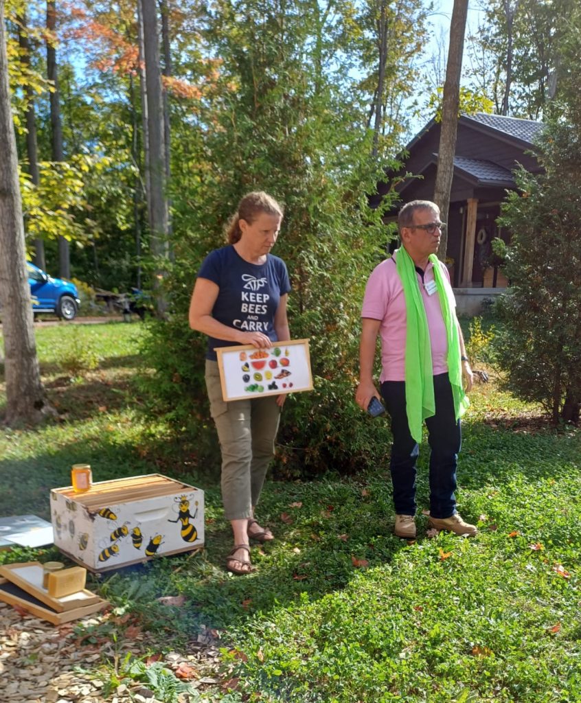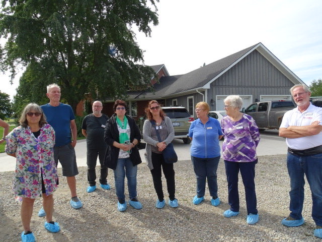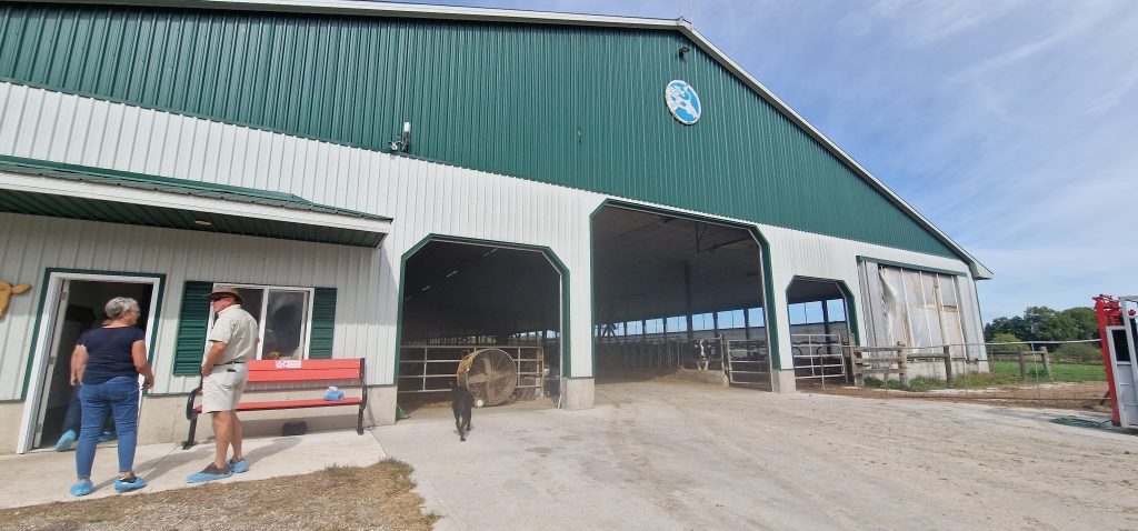 Die Sonne scheint heute morgen und ich gehe im Grand River baden. Mitten im Wald erklärt uns vormittags eine Bienenzüchterin das Leben & Sterben der Bienen. Wir entdecken in ihrem Garten Hanf und verkosten ihn. Die Bienenzüchterin nimmt ihn für Süßspeisen. Wir essen in einem alten Restaurant und ich es super zubereitetes Schnitzel. Dann besuchen wir eine Milchfarm. Eine sehr junge Bäuerin führt uns durch den Stall. Wir sehen Kühe, die krank im Stroh liegen, andere, die auf dem nackten Bogen stehen, aber jederzeit ins Grüne können, aber dahin gingen sie lieber nachts., Kühe, die bald kalben und die gekalbt haben liegen auch im Stroh. Deren Junge müssen nach sieben Tagen ihr eigenes Leben getrennt von der Mutter beginnen. Alles geht wieder von vorn los: melken, befruchten, trächtig sein, austragen und melken….bis die Kuh zu alt und geschlachtet wird… Auch das Futter für die Milchkühe baut die Farm selbst an. Unsere Gastgeber haben es eilig, nach Hause zu kommen, weil wir zum Essen und und Singen fahren. Das Essen beim Griechen kommt bei weitem nicht an unseren Griechen ran. Auch laufen hier, wie in allen Restaurants, die Fernseher ohne Unterlass. Es ist trotzdem schön, mit den Freunden unserer Gastgeber zusammen zu sein. Im Kitchener Theater erleben wir einen großartigen Singeabend. Alle, mehrere Tausend, singen im Chor Hallelujah, und andere weltbekannte Lieder. Kitchener hieß bis zum Krieg Berlin. Viele Städte und Ortschaften tragen hier deutsche Namen, die Straßen heißen oft Herrgott.