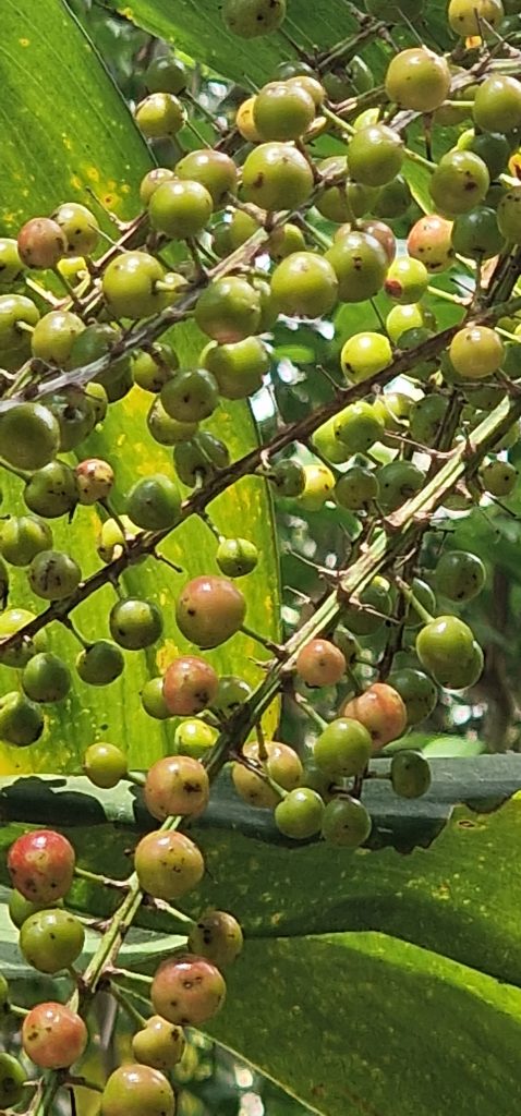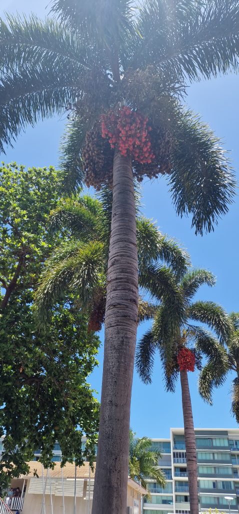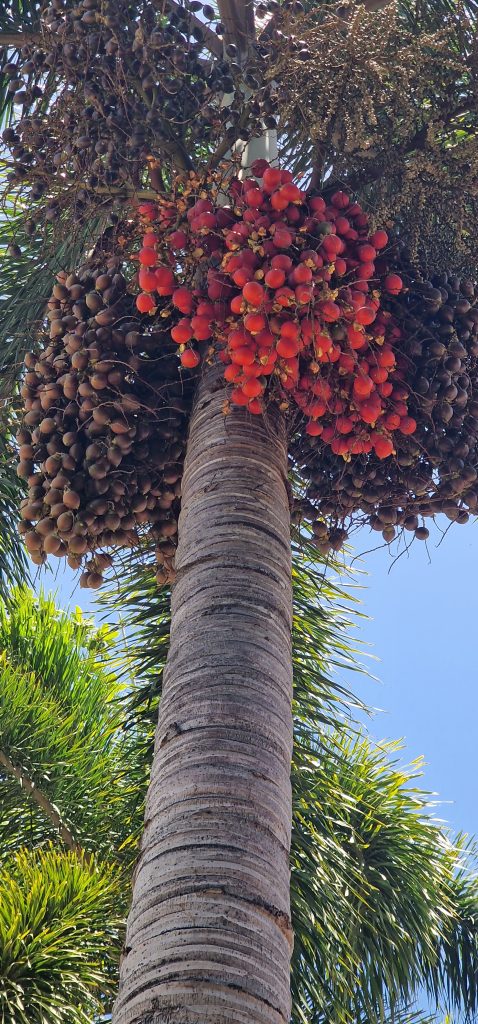 Die Manila- bzw. Weihnachtspalme, so genannt wegen der roten Früchte um die Weihnachtszeit