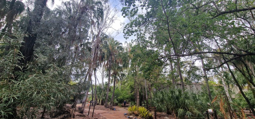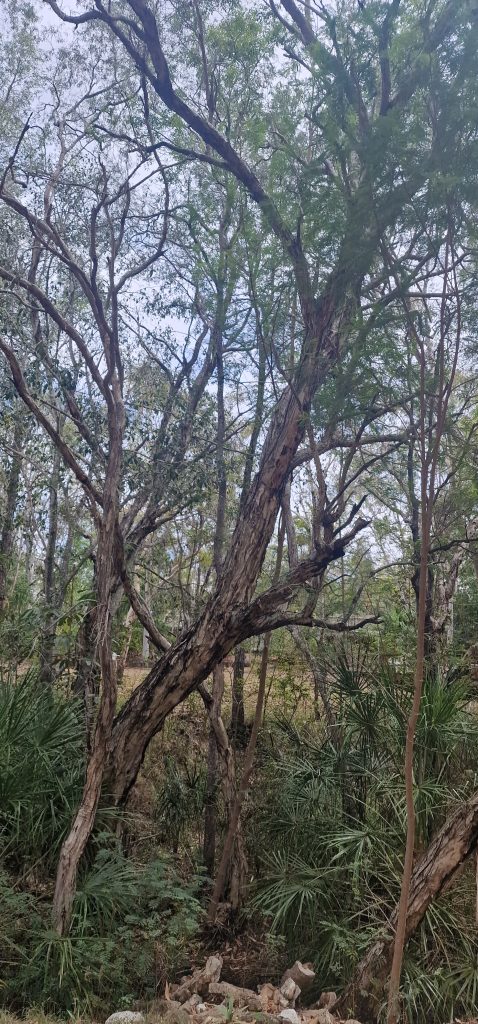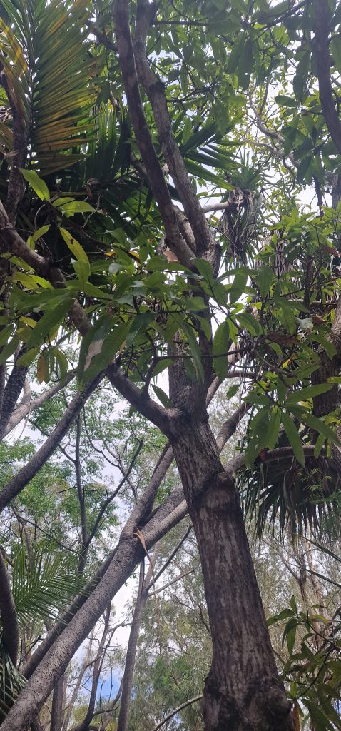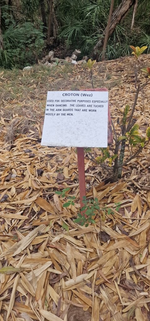 Hier im Foto nur klein zu erkennen, wir würden Gummibaum sagen, zu dem Kroton. Die Aborigenes verwendeten die Blätter als Schmuck.