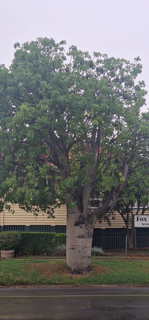 Auf dem Foto kommt das nicht so gut rüber, leider.Fas ist der Flaschenbaum. In Australien wird er Kurrajong genannt.