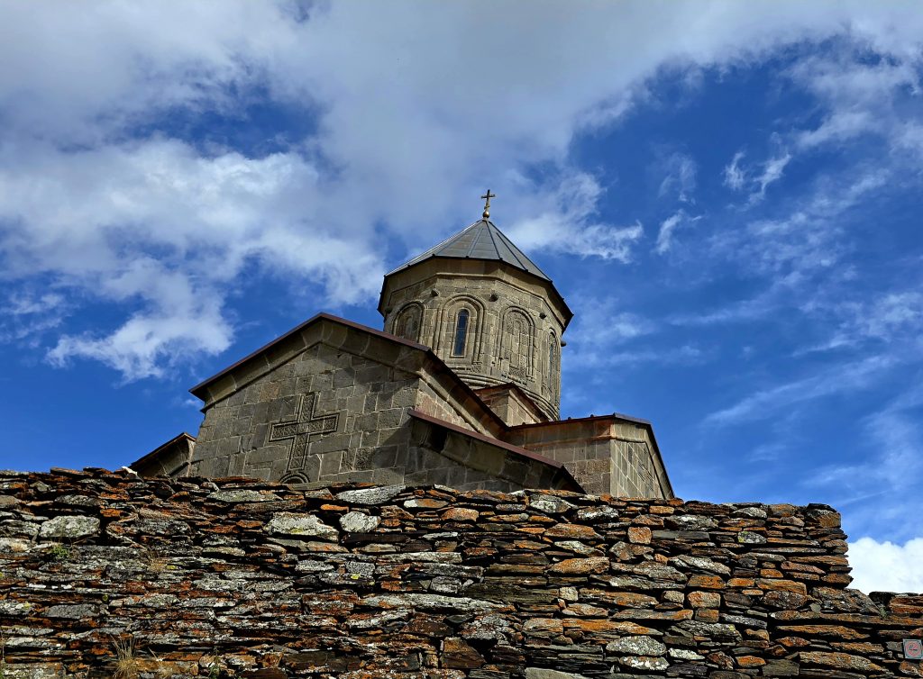 Von der eigentlich in jedem Georgien-Führer abgebildeten Seite haben wir kein Foto gemacht, da mehr Menschen als Kirche zu sehen gewesen wären. Lieber wie alle anderen ein Selfie und dann zum Wandern fliehen: