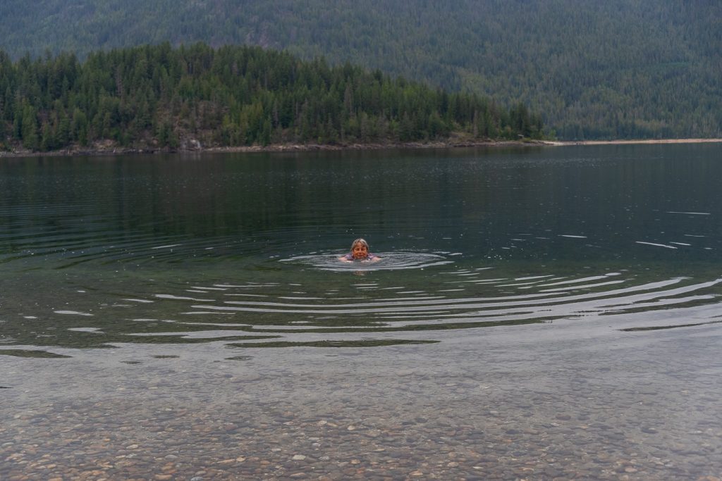 Wir fuhren heute etwas über 200 km sehr gemütlich mit Zwischenstopp am herrlichen Mara- See inmitten der Berge. Dort schwamm ich im See.