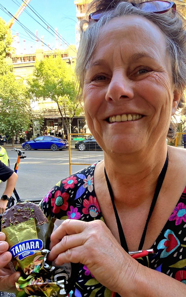 In Jerewan brauchen und bekommen wir Hilfe, um ein Taxi zu buchen und müssen nochmal telefonieren, weil an der uns benannten Adresse kein Gästehaus ist. Nun sind wir angekommen, führten erste Gespräche mit der Wirtin und unseren Friendship Force Freunden, die nachts aus Deutschland ankamen. Aßen Pizza vom Lieferdienst und frische Pfirsiche, saftige Birnen, große Pflaumen und zuckersüße kleine kernlose Trauben. Beim ersten Shopping gönne ich mir Pistazieneis und Kaffee. Im Kaffeeladen stehen mindestens 40 Sorten zur Auswahl und ich verstehe nicht, warum sie hier ein Bruchteil von dem, was bei uns zu löhnen ist, kosten. Gern hätte ich die Angebote im Supermarkt fotografiert, aber das ist verboten. Zum Beispiel die vielen Sorten unabgepackter Nüsse. Es ist ein überraschend frisches und breites Angebot und es wimmelt so von Personal. Auch dieser Markt ist rund um die Uhr geöffnet. Der erste Eindruck von der Millionen- Hauptstadt: sehr sauber und sehr viele glänzende Autos ohne Ramponierschäden. Sehr viele gut und salopp gekleidete, geschäftige Menschen, schöne stolze Frauen auf oder vom Weg zur Arbeit, wichtige rauchende Männer in Grüppchen, eilende junge Sportsfreunde und Intellektuelle, Familien beim Shoppen, Hausfrauen und leider auch arme Bettler. Viele Bauten aus Sowjetzeiten, wo es herausfordernd ist, zu fotografieren. Und wo sind die vielen Touristen von Tblisi hin? Dann hält aber ein Bus von Studiosus- Reisen.