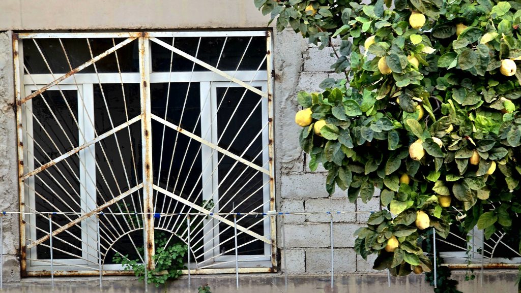 Der Blick aus unserem Zimmer geht über die kleine Straße hinweg auf ein Haus mit schönem Quittenbaum davor. Im Supermarkt gibt es verschiedene Säfte mit Obst drin, unter anderem derart Quittensaft.