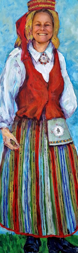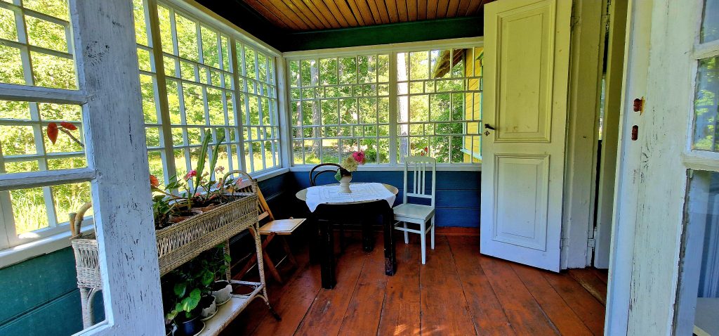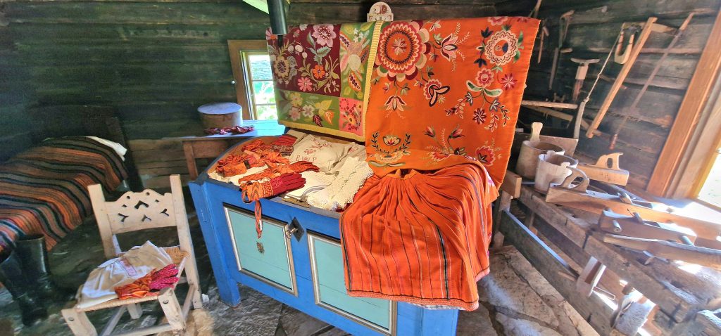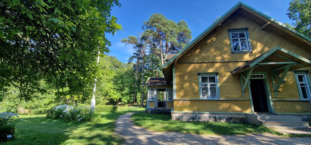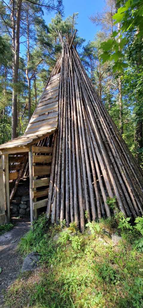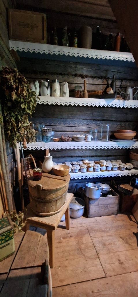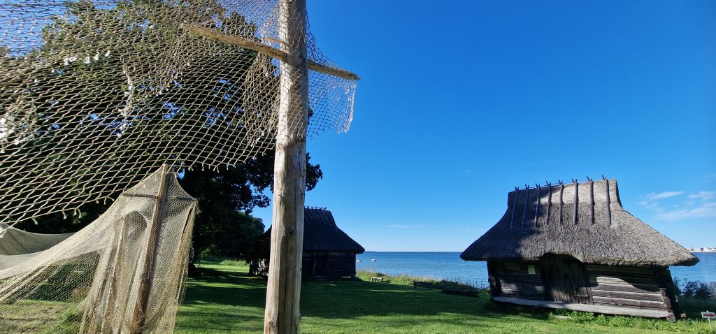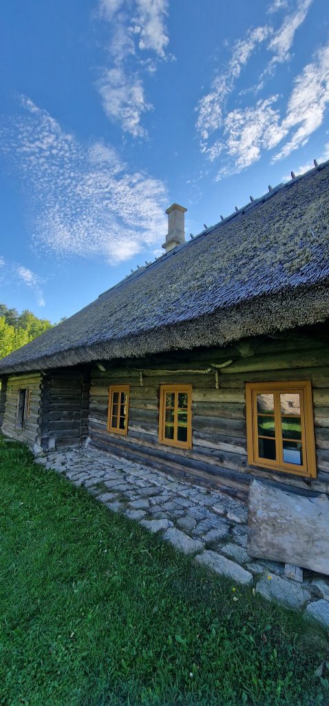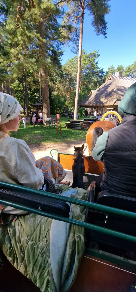 Um wieder etwas nach Geschmack der Enkelin und meinen Bedürfnissen Entgegenkommendes zu finden, schlug ich das Freilichtmuseum von Tallinn vor. Das erwies sich als großer Glücksfall für uns beide. Einerseits liegt das Museum malerisch im Wald mitten an der Ostsee mit Blick auf den Hafen von Tallinn. Andererseits gestalteten auch hier die Museumspädagogen ein für Kinder und Erwachsene ansprechendes Areal zum Mittun und Lernen. Sehr lange schauten wir in einem der Holzhäuser im Bauernhof Jüri-Jaagu einem nachgestellten Hochzeitsritual zu. Ich bestaune die schön bestickten und bunt gewebten Trachten. Die Enkelin konnte sich von dem Hochzeitsritual- Film kaum trennen. Eine Ziege, Hühner und Kaninchen leben zum großen Vergnügen meiner Enkelin im Park, Wölfe heulen, wenn wir in die Rohre reinrufen, und der Schäfer vertreibt sie mit einer Riesenrassel, die wir schwenken müssen. Selbst Hanf wächst im Garten. Ich ernte dankbar Liebstöckelsamen. Die Enkelin fragt in Anbetracht der schönen Blütenblätter, ob Lilien giftig sind. Auf einer Riesenholzschaukel am Peipussee-russischen Haus warten wir, dass im Klo mit Strom unsere Telefone wieder aufgeladen sind. Die aus Russland an den Peipussee geflohenen Gläubigen bauten Gemüse an und fischten. Von ihnen stammt die in das Kulturerbe eingegangene Zwiebeltradition und der Zichorienkaffee. Mit dem Pferdewagen drehen wir eine Runde rundum. Wir schauen in einem Bauernhof einer Frau beim Weben einer Bordüre zu. Aus dem Haus weht und duftet hölzern Rauch, der Ofen ist angeheizt. Nur das angekündigte Töpfern findet nicht statt. Obwohl wir weit liefen, um den Setukesischen Bauernhof zu finden. Die Setu- Männer waren für ihre Töpferkunst bekannt. So wäre noch viel von den verschiedenen Traditionen und Völkern und Zeiten zu lernen gewesen. Bis zum Kolchos-Mehrfamilienhaus zum Beispiel drangen wir nicht mehr vor. Schade.