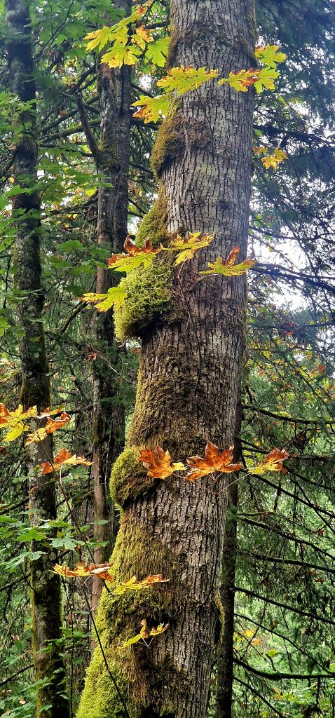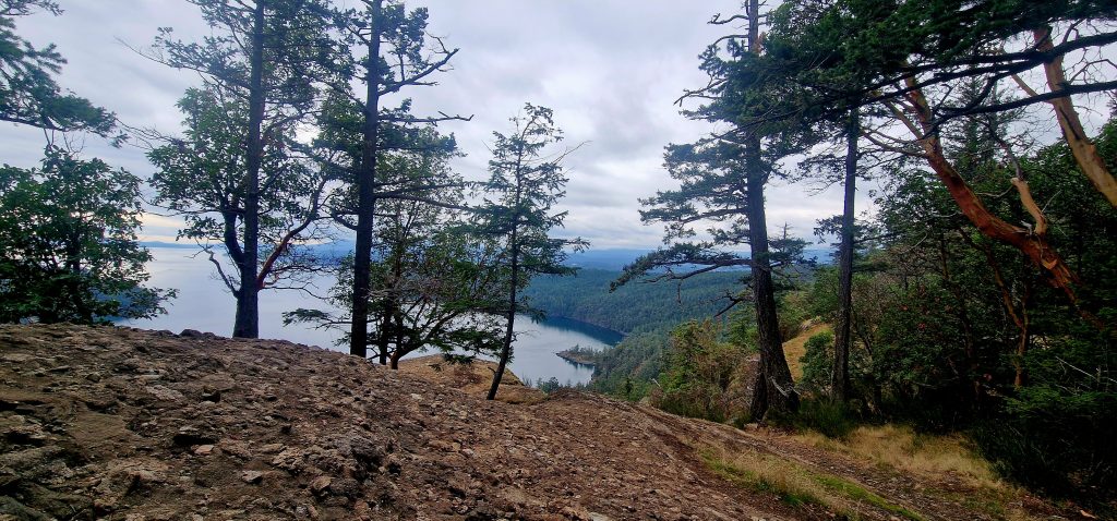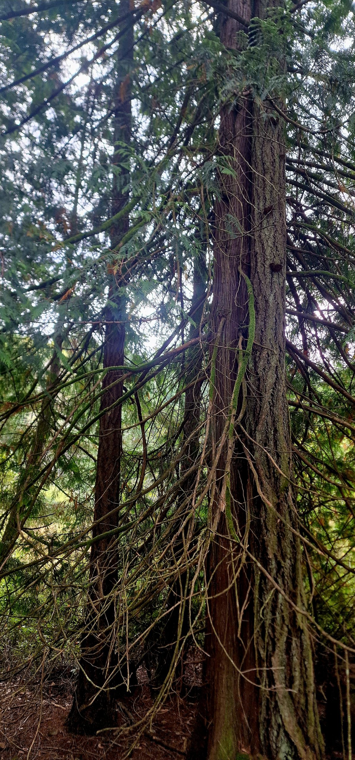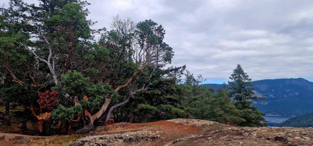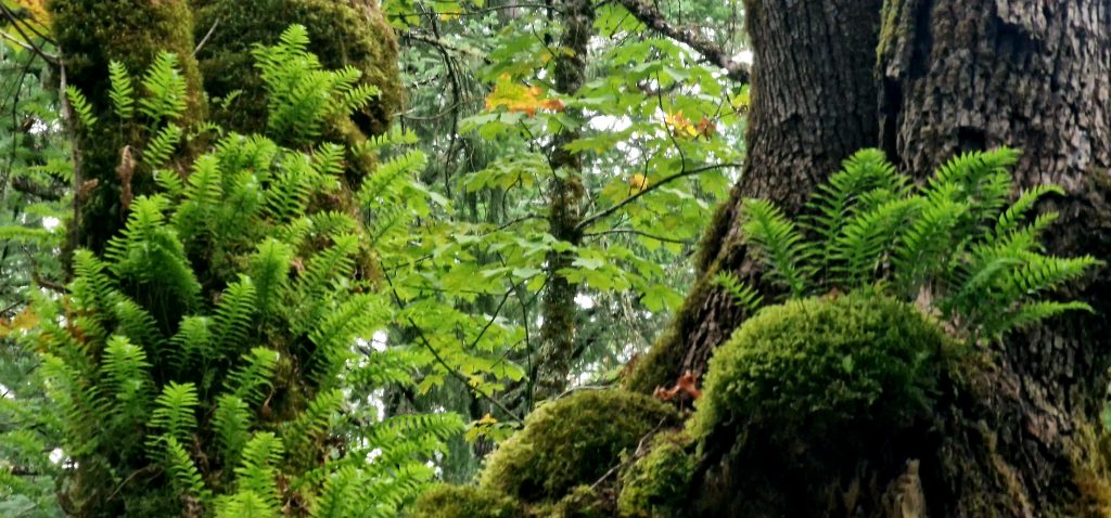 Von dem Campground am Meer in Richtung der Norden der Insel fuhren wir wieder zurück, in Richtung Süden, bis zur Stadt Nanaimo. Dort soll es die berühmten Nanaimo Bars geben. Wir suchten und fanden eine Café mit diesen und probierten das sehr süße Gebäck. So gestärkt fuhren wir weiter in den Süden zu einem Wandertrail. Auf der kleinen Wanderung (6 km Rundweg mit etwas bergauf und bergab) genossen wir die Ruhe im Wald, seine Andersartigkeit und natürlich die spektakulären Ausblicke auf den Pazifik. Wir fotografierten viel und weil Flora inkognita selbst im Wald ins Worldwideweb fand, bestimmte ich einige Pflanzen. So fand ich heraus, dass die Red Cedar, die Rote Zedar hier genannt, ein sehr großer Lebensbaum ist, der hier in Nordamerika heimisch ist. Auf dessen Holz war am Abend zuvor der Fisch so köstlich gegrillt worden! Weiterhin lernte ich, dass der vermeintliche Ficus der Amerikanische Erdbeerbaum ist. Er hat eine sehr interessante Rinde, die sich schält. Auf den Bäumen die Flechten, die ich schon oft sah, ist das Louisanamoos. Der Wald war zugewachsen mit Moosen, Farnen, Mahonien und Beeren namens Shallon, die ich bisher noch nicht kannte. Alte Orgeoneichen, Ahorne, Lärche, Fichten, Tannen und Kiefern wachsen hoch in den Himmel.