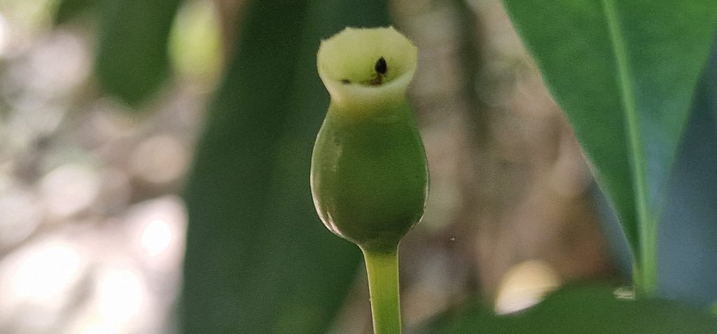 Auf dem Rückweg kauften wir Bananen am Straßenrand, die so frisch und reif viel intensiver schmecken. In der Baumschule, wo wir anhielten, lerne ich den Lichtnussbaum kennen.Seine Nüsse kann man auch essen….