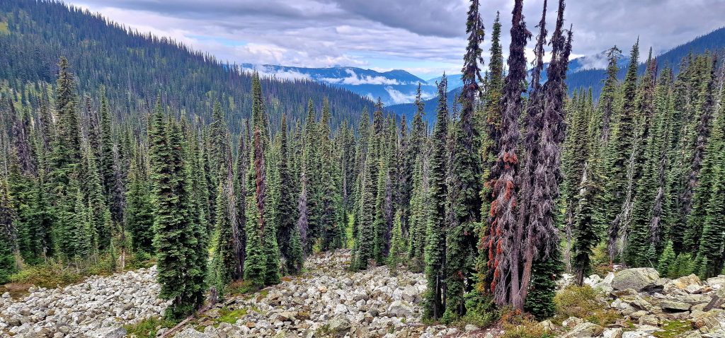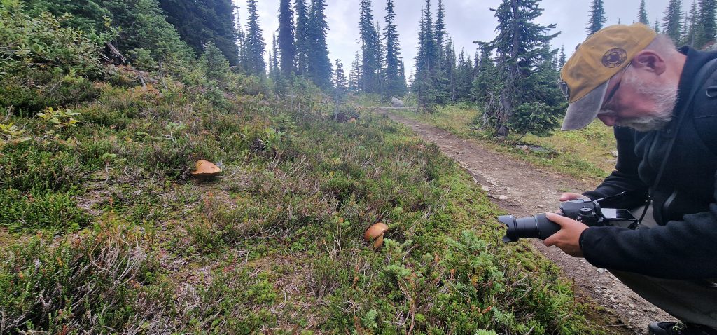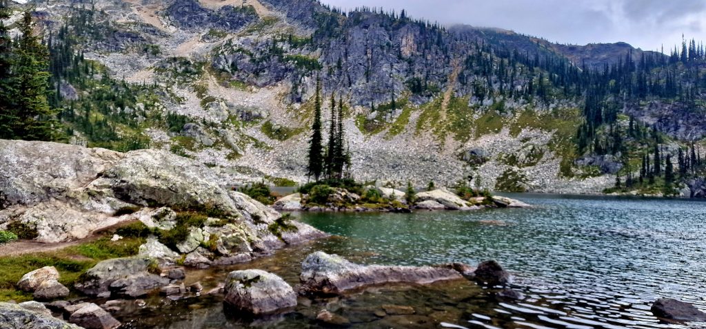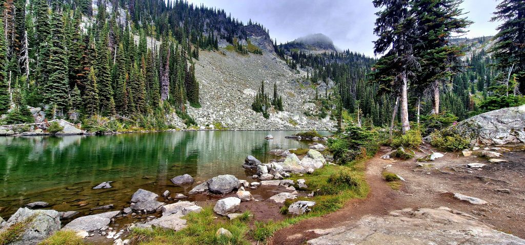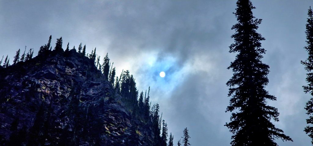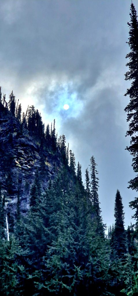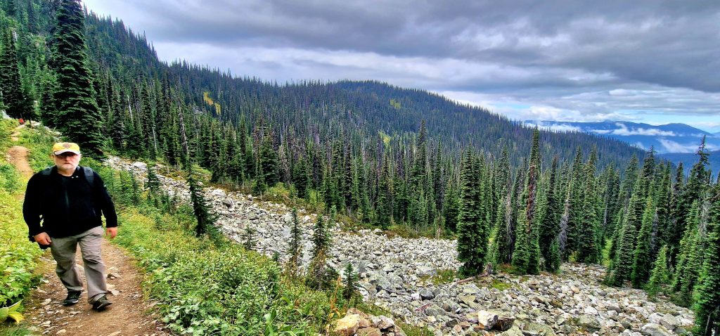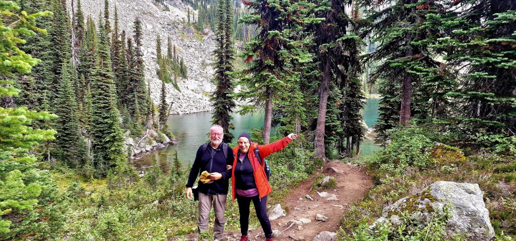 Nach unserem Frühstück auf dem wirklich etwas erbärmlichen Zeltplatz- wir fanden nicht mal Mülleimer- fuhren wir zum Einlasshäuschen für den Nationalpark. Wir kauften zwei Senioren-Tagestickets und fuhren 26 km in den Park bergauf, zum Parkplatz. Da hatten wir Glück, einen zu bekommen.Ist er voll, kann man mit dem Auto nicht mehr reinfahren. Den ersten Kilometer zum ersten See hinauf fanden wir leicht und so entschlossen wir uns, die ausgeschilderten 5,6 km bis zum nächsten See hin und zurück laufen zu können. Auf der einen Seite genossen wir sehr die Wanderung, auch wenn wir den Bären nur auf Schildern sahen. Der Wald, so grün, lockte mit Blaubeeren und riesengroßen Pilzen, noch ein paar der Berg- Blüten, für die der Park gepriesen wird. Ich naschte die Blaubeeren. Wir wanderten bergauf und bergab und wieder bergauf, auch durch Geröllfelder. Mit uns wanderten eben so viele, wie auf die Parkplätze gepasst hatten. Und sie überholten uns immer. Sogar die mit prallen Rucksäcken, die oben Zelten und übernachten dürfen. Die 5,6 km waren um und wir waren immernoch nicht da. Hin und zurück wanderten wir 18 km!!! Der See, den wir dann glücklich nach 3 h erreichten, haute uns nicht um. Dolomitenfeeling, sehr schön, aber? Kein spektakulärer Ausblick oder so was. Wir verzichteten, die anderen beiden Seen zu erreichen und wanderten Hüft- und Knielahm und oft außer Atem zurück. Jetzt sind wir glücklich, auf der Fahrt zu den wohl großartigsten Plätzen der Rocky Mountains an einem See, der sich so grün von den Bergen spiegelt, gelandet zu sein.Der Campingplatz kostet noch mehr als der erste oder zweite, aber nur den vierten Teil von dem, was das preiswerteste Motel kosten würde!!! Da schlafen wir wieder gern im Auto.
