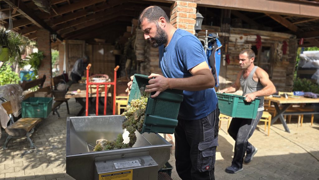 Der Traubensaft von den weißen Trauben kommt in die Amphoren